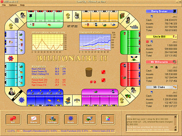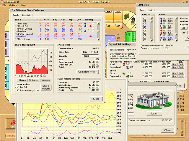 Ένα άλλο παιχνίδι τώρα που θυμάμαι είναι το Billionaire. Νομίζω ήταν το Billionaire 2, η δεύτερη έκδοση, το οποίο ήταν κάτι σαν μονόπολη, με τη διαφορά όμως ότι μπορούσες να επενδύσεις και στο χρηματιστήριο που υπήρχε μέσα στο παιχνίδι.